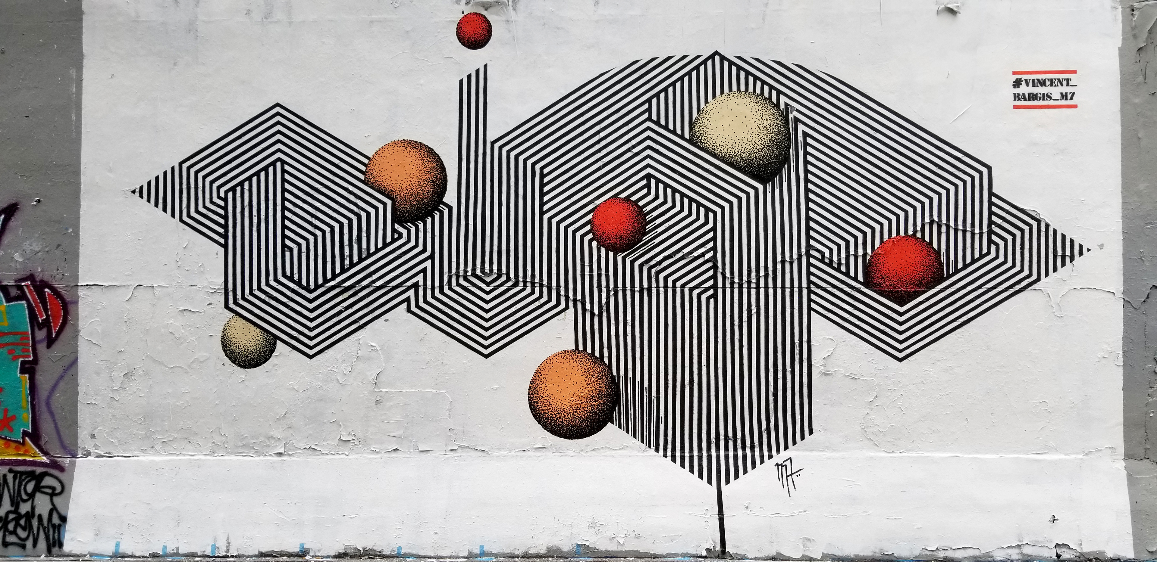 Mur réalisé dans le 10ème à Paris, il représente le mot DUNE.