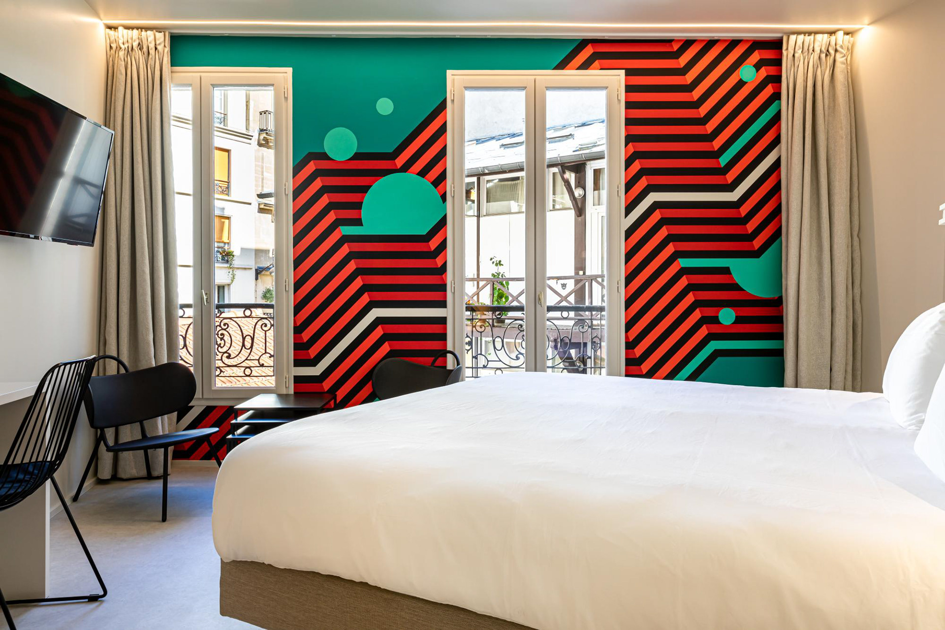 Aperçu des 18 chambres, toutes différentes, peintes dans Le Graphik Montparnasse,