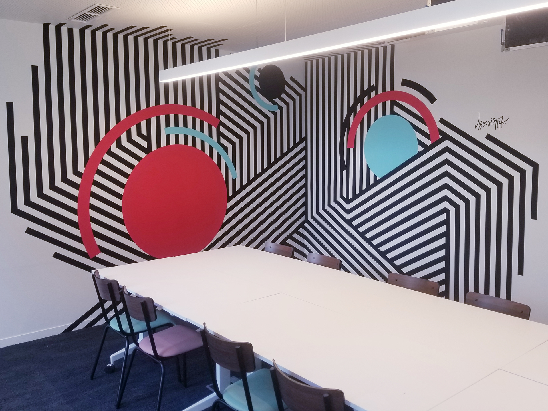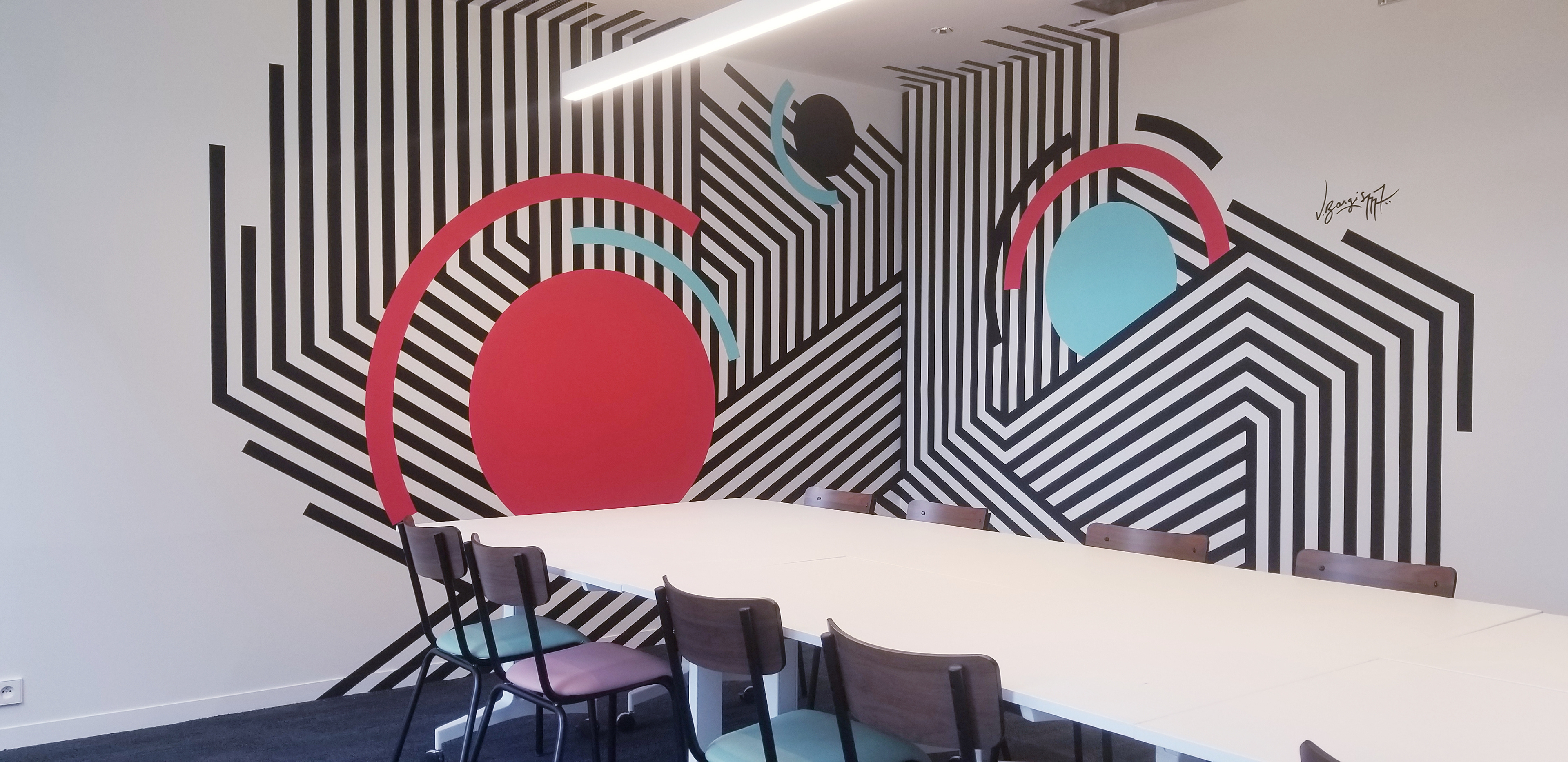 Peinture réalisée dans la pièce nommée ''Faites le mur'' du Nida à Issy Les Moulineaux, dans cette pièce sont organisés des ateliers de groupe pendant lesquels les participant(e)s découvrent la pratique des arts urbains.