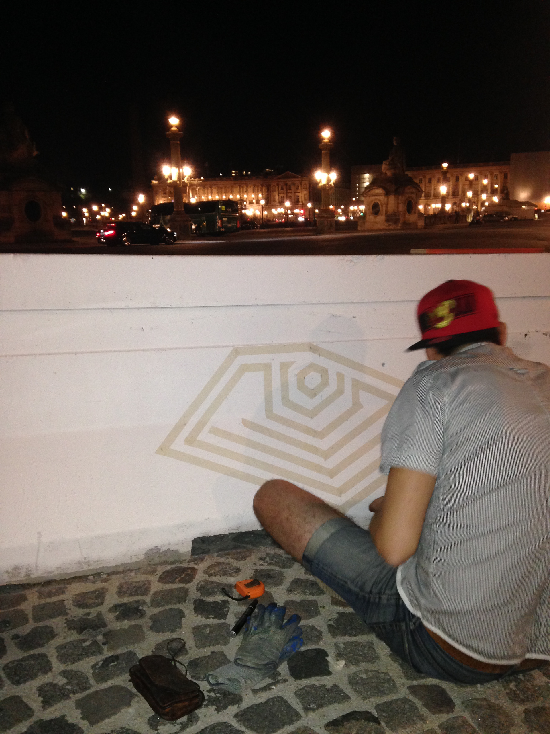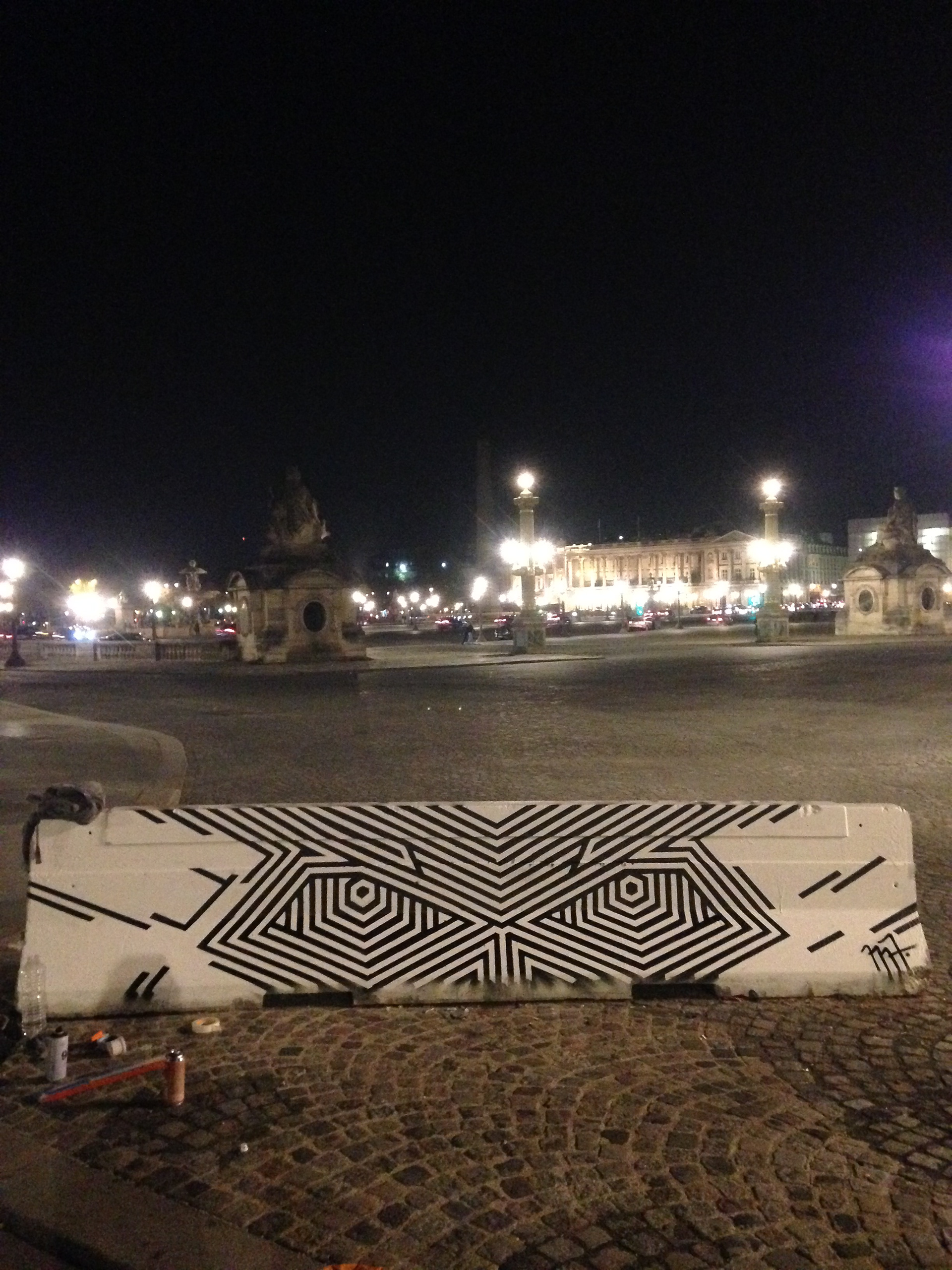 Plot de chantier (80x400cm) réalisé à la spray sur la Place de la Concorde.